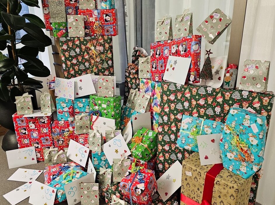 "We're ready!" writes the event manager of Raiffeisenbank Basel on December 14, 2023, meaning that all the Christmas parcels for the children of the women's advice center's customers are ready to be handed over.