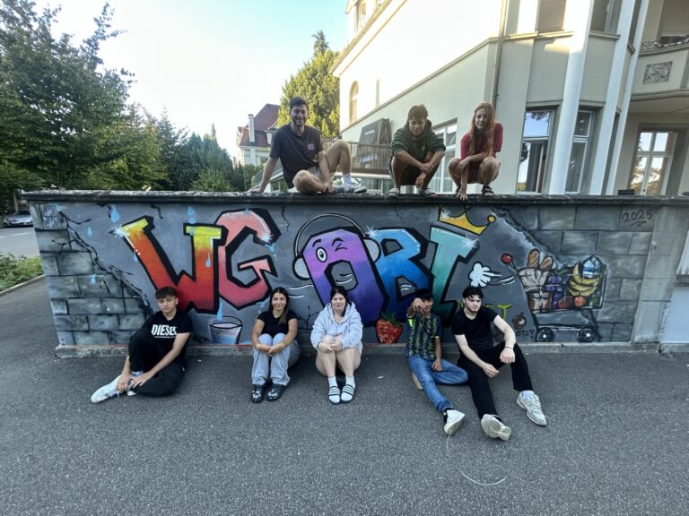 The Oberwilerstrasse residential group has redesigned its exterior wall together with ARTWITHUS. The result is a colorful graffiti that makes creativity, community and joie de vivre visible - for the young people and the entire neighborhood.