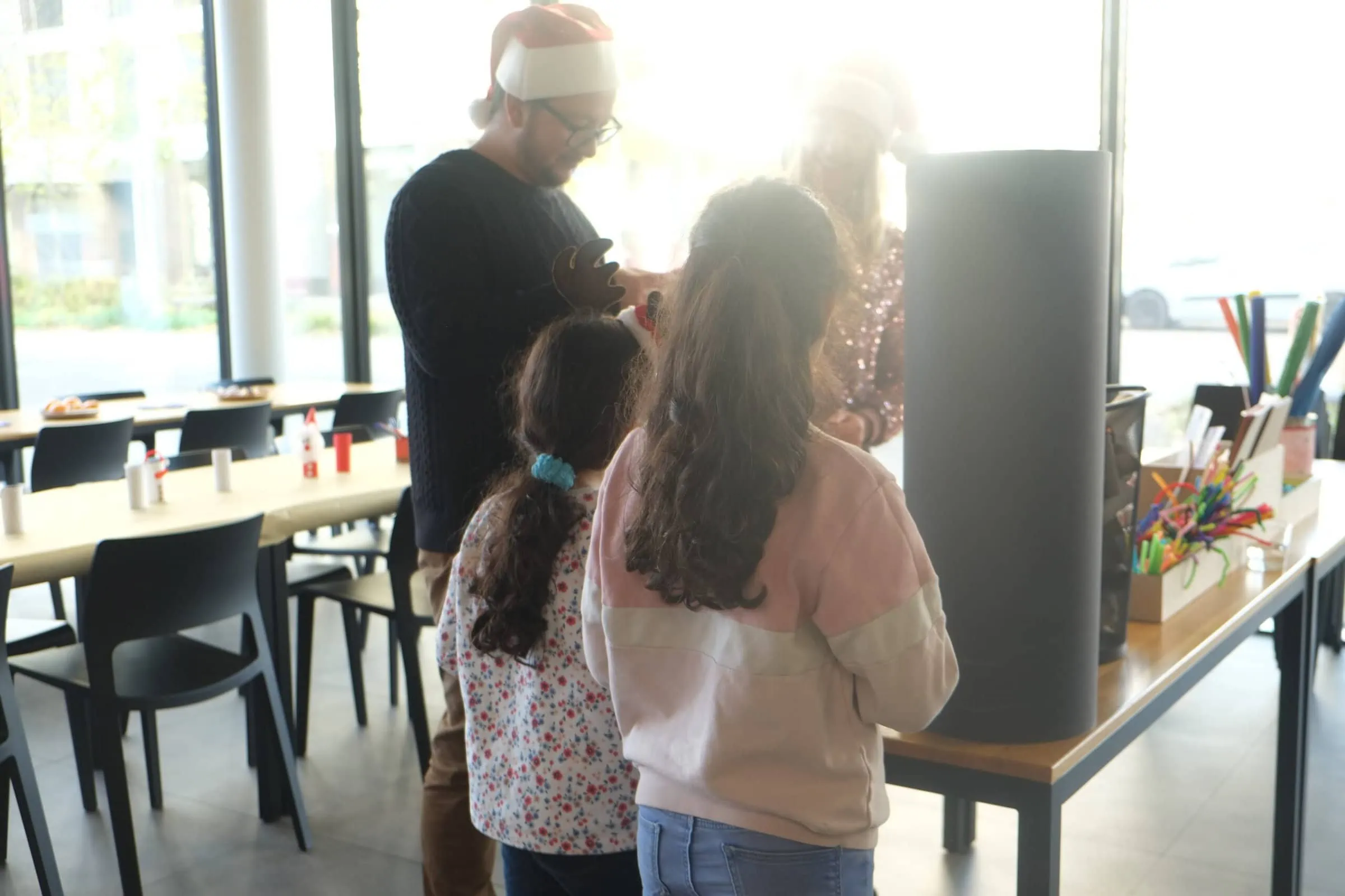 Afterwards, we were all allowed to fortify ourselves with a Christmas aperitif with lots of pastries and hot chocolate. The children were able to try out various activities together with the Fossil employees. There was a lot of crafting, playing, telling and laughing. The highlight was certainly Santa Claus, who surprised the children and of whom everyone could still take a picture.